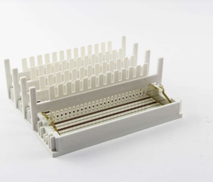 The Mupid® One comes with the Gel casting set standard (Cat.No. ON-MS). This casting set includes 4 combs, which can be used from both sides (13 wells and 26 wells). Furthermore, this set comes with different gel trays: Two gel trays small (S) for the preparation of mini gels and one gel tray large (L) for larger gels. The optional gel casting set GM-HR includes 2 large combs and two different gel trays: 4 gel trays small (S) and two gel trays large (L).